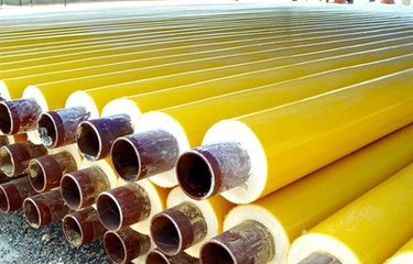 原材主要包括有缝钢管和无缝钢管。黄夹克聚氨酯保温钢管常用的保温材料是硬质聚氨脂泡沫塑料,适用温度为-185~120℃。这种材料质地松软,为提高其强度,在隔热层外面加敷一层高密度聚乙烯层,形成复合材料结构,以防止地下水渗入保温层内。黄夹克保温管结构主要包括工作钢管层,聚氨酯保温层和高密度聚乙烯保护层。其中最外面的一层由预制成一定壁厚的黑色或黄色聚乙烯塑料材料覆盖。黑色的称之为黑夹克保温管,黄色的称之为黄夹克保温管。其作用一是保护聚氨酯保温层免遭机械硬物破坏,二是防腐、防水。高密度聚乙烯聚氨酯发泡保温钢管执行:SY/T114-2000和SY/T115-2001标准。